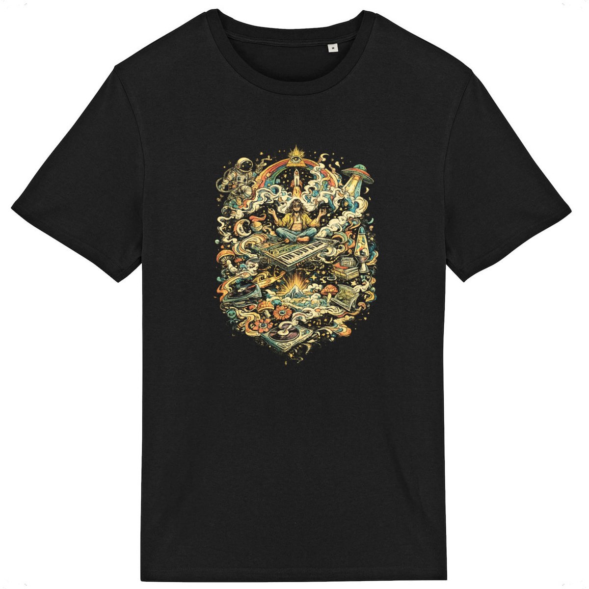 Orbital is a bold, abstract graphic t-shirt inspired by movement, colour and cosmic flow. Printed on a classic unisex black tee made from soft organic cotton, it’s designed for everyday wear — expressive, comfortable and effortlessly wearable.
